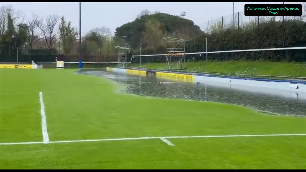 Утки на затопленном стадионе в 3-й лиге Испании – из-за масштабной непогоды!