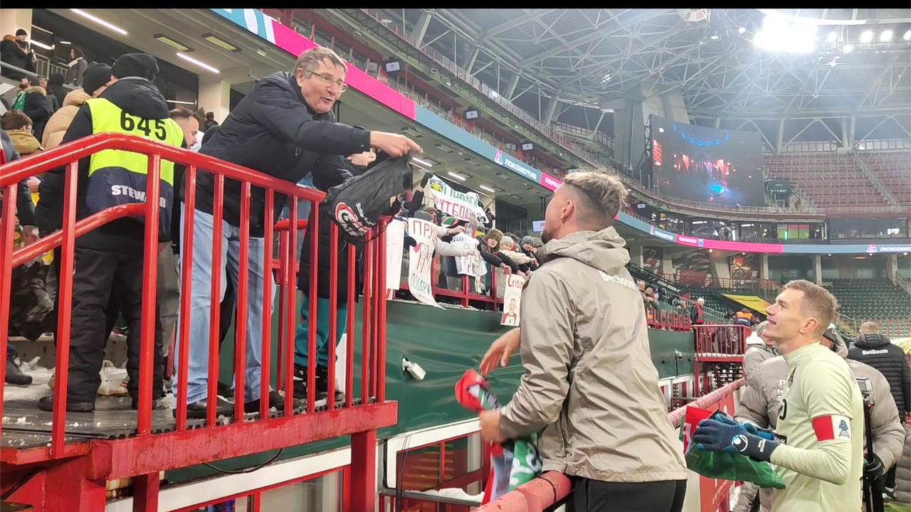 Данил Веселов из «Локо» подарил футболки вратарей болельщику